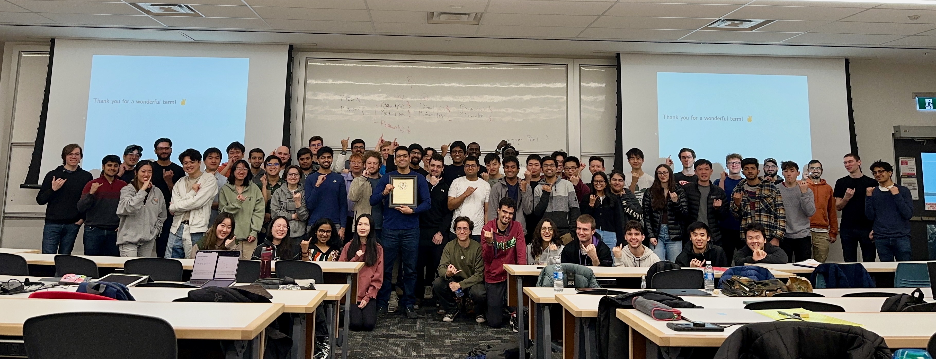 This photo captures my very first class as a professor at the University of Waterloo, where I was honored to be nominated by my students and receive the prestigious Igor Ivkovic Teaching Excellence Award. Together, we built a vibrant learning community that valued curiosity, collaboration, and growth. Now, it’s your turn to become part of this revolution in Machine Learning education.